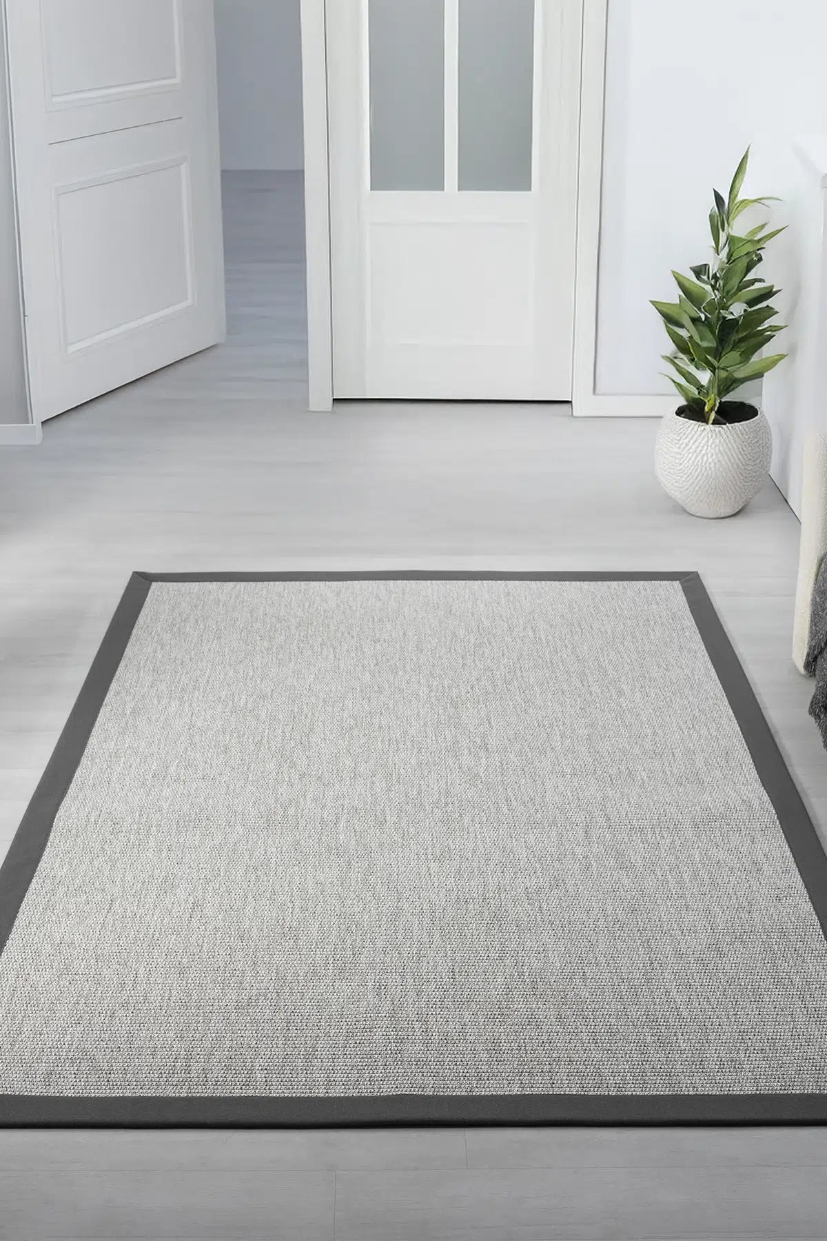 Bombay Gri Halı Antrasit Bordürlü Kolay Temizlenen Hasır Dokulu Sisal Halı 664